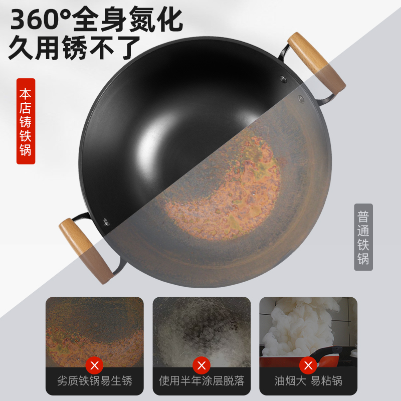 (maternal and infant pig iron casting) ★Healthy and environmentally friendly (imported beech wood handle) High-temperature resistant ★formaldehyde-free mother-to-child grade cast iron (30cm without cover) imported handle mother-baby-grade cast iron (30cm belt)