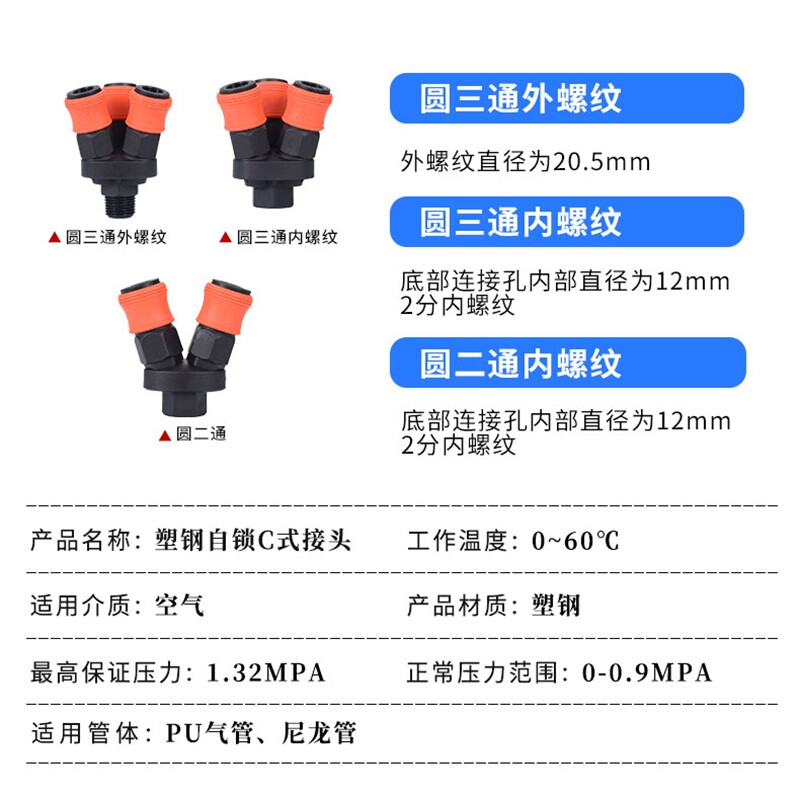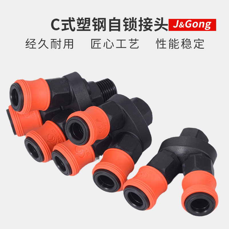 Plastic steel self-locking c-type quick connector trachea air gun air pipe air pump air compressor male and female head pneumatic two-way three-way