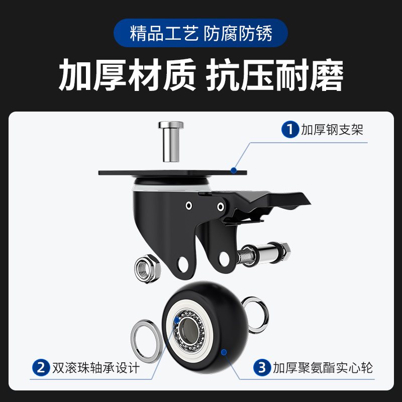 4 installed (1 5 inch) silent universal wheels ● With brakes★Load-bearing 320 Jin 4 (1 5 inch) silent universal Wheel ● No brake★Damaged package compensation 4 only (1 5 inch) static