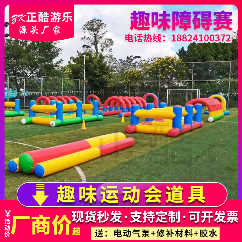Fun games expand props Super steeplechase four-piece set inflatable hurdle balance beam drill net Jungle adventure