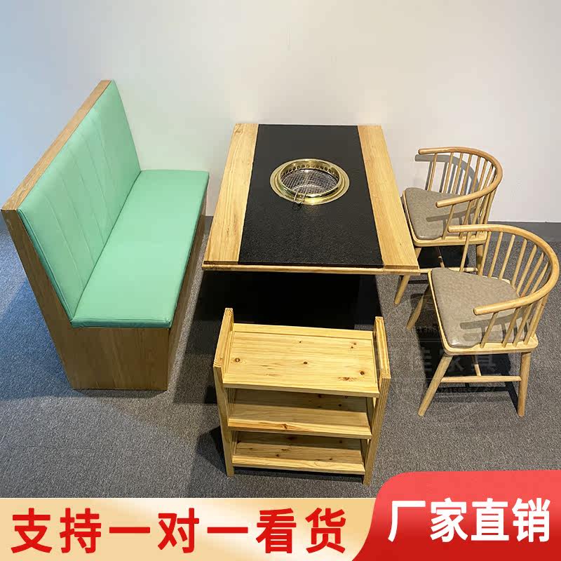 Marble Smoke-free Barbecue Table And Chairs Combined Commercial Buffet Dining Room Solid Wood Buns Side Grilled Hot Pot Table Rinsed