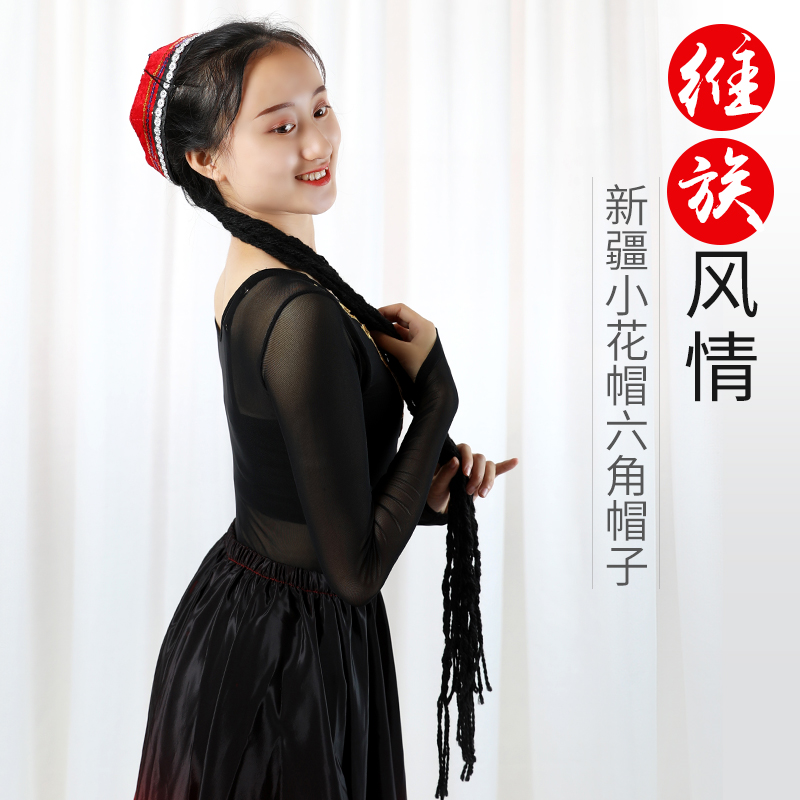 Adult girl boy with braid hat children Urban hexagon small flower hat minority stage performing Xinjiang hat