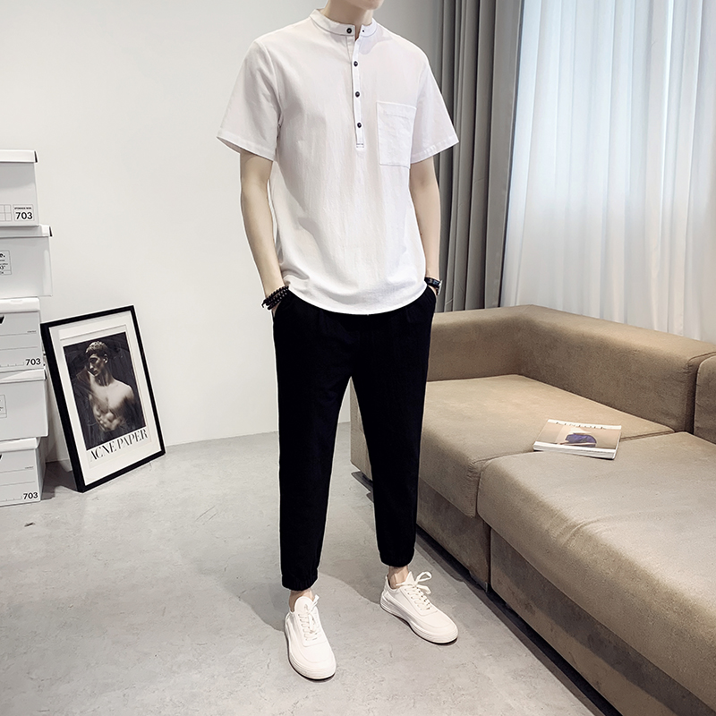Casual Suit Men 2022 Summer thin Breathable Linen Short Sleeve T-shirt Korean version Trend Sport Men's two sets