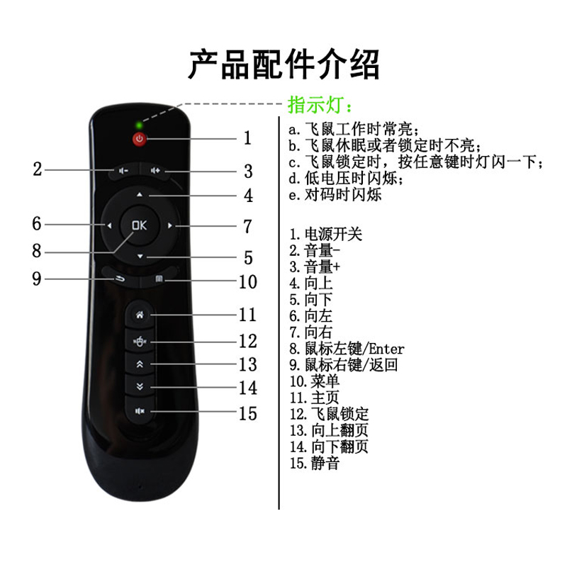 Android system for automobile TV Suction Head Pillow Monitor dedicated flymouse remote control with USB wireless receiver