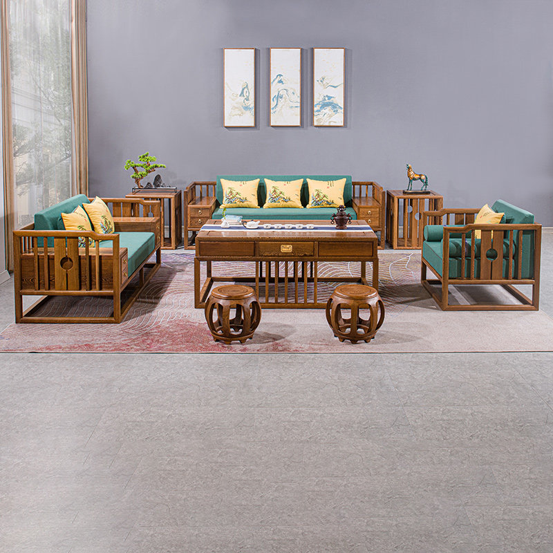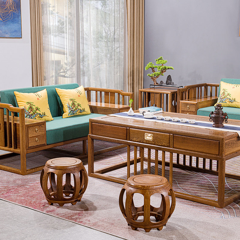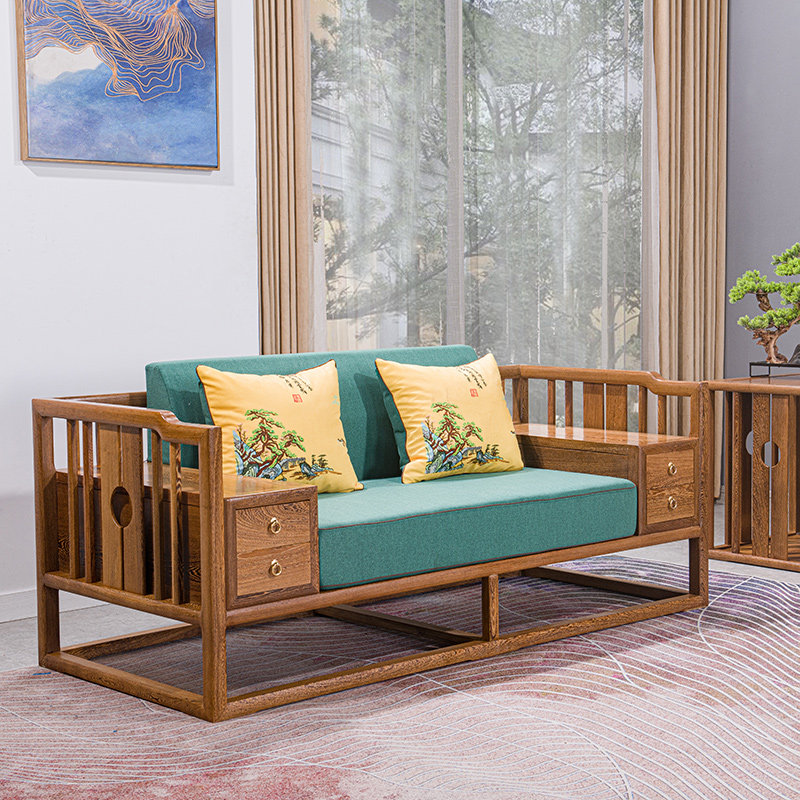 Yunqiwei mahogany furniture chicken wing wood sofa new Chinese solid wood leisure simple sofa chair combination three-seater