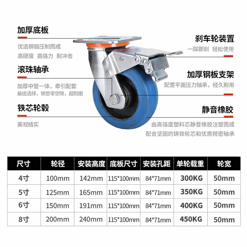 4-inch heavy-duty iron core rubber universal wheel 5-inch heavy-duty silent caster 6-inch flat trolley wheel 8-inch wheel