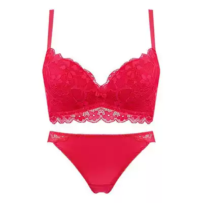 New Big Red year sexy lace cute cover set girl without steel ring small chest gather wedding underwear