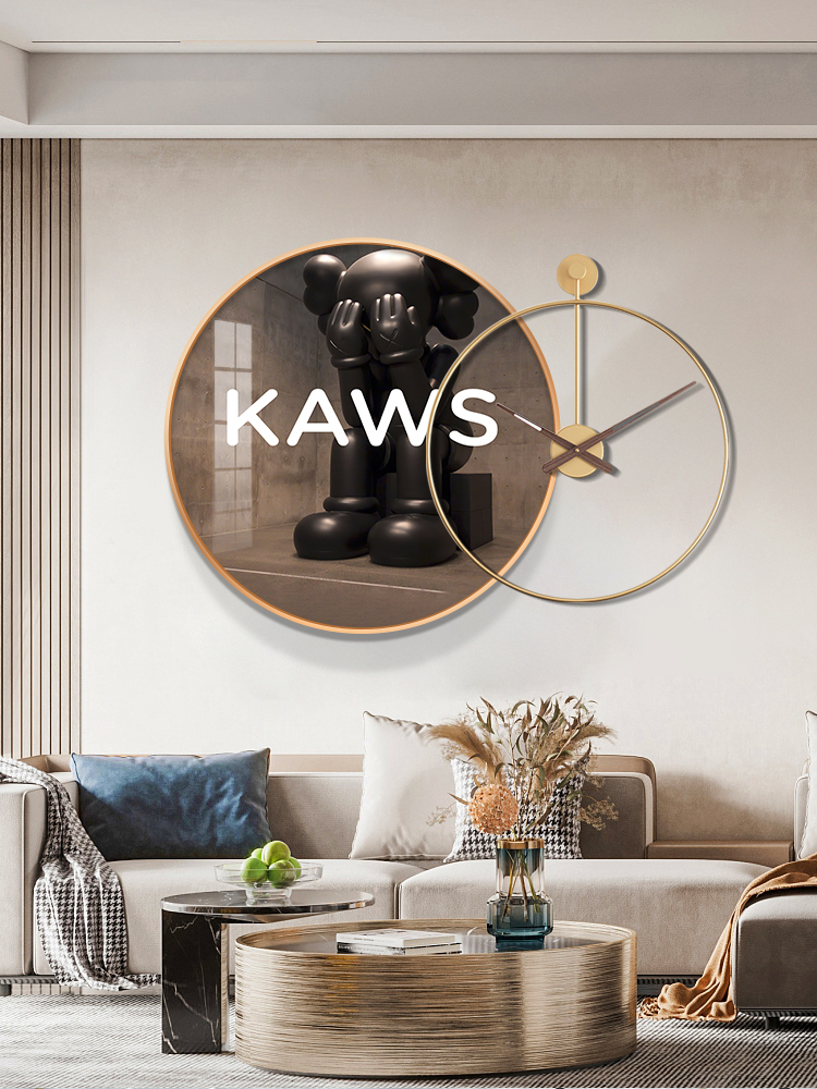KAWS hanging painting dining room decoration painting circle wall clock Tide brand violent bear cartoon Children's room painting Nordic living room mural