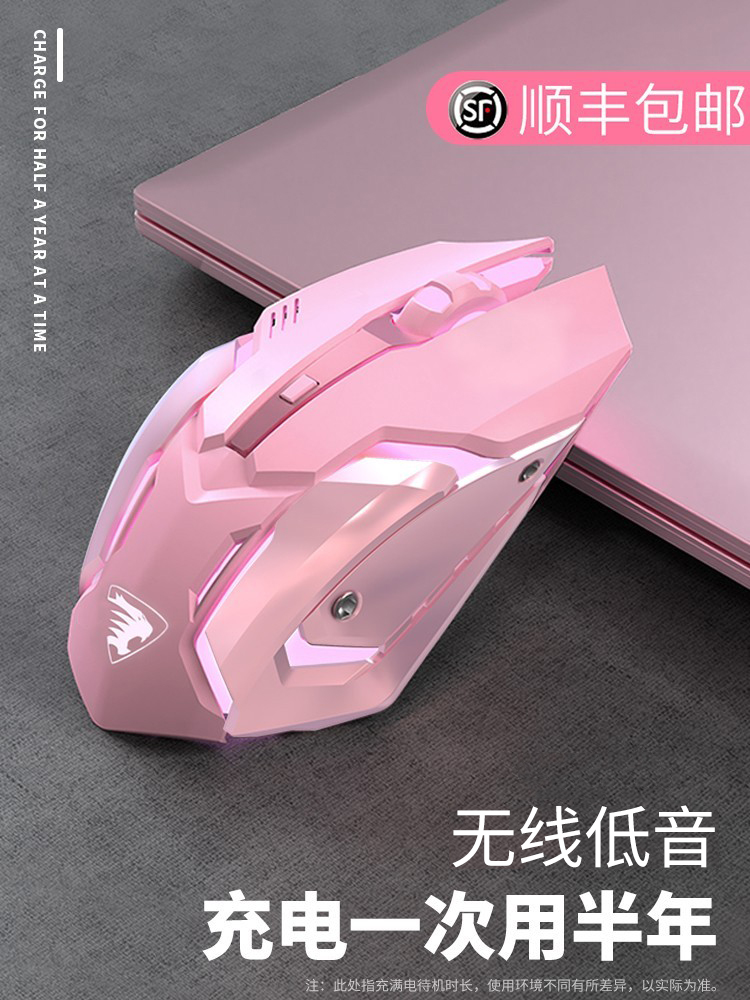 Dazzling Wireless Slip Rat Mechanical Electric Race Game Slip Rat Rechargeable Bluetooth Non-Silent Slip Rat Wired Wireless Girl Girl Pink Cute Pen Electric Office