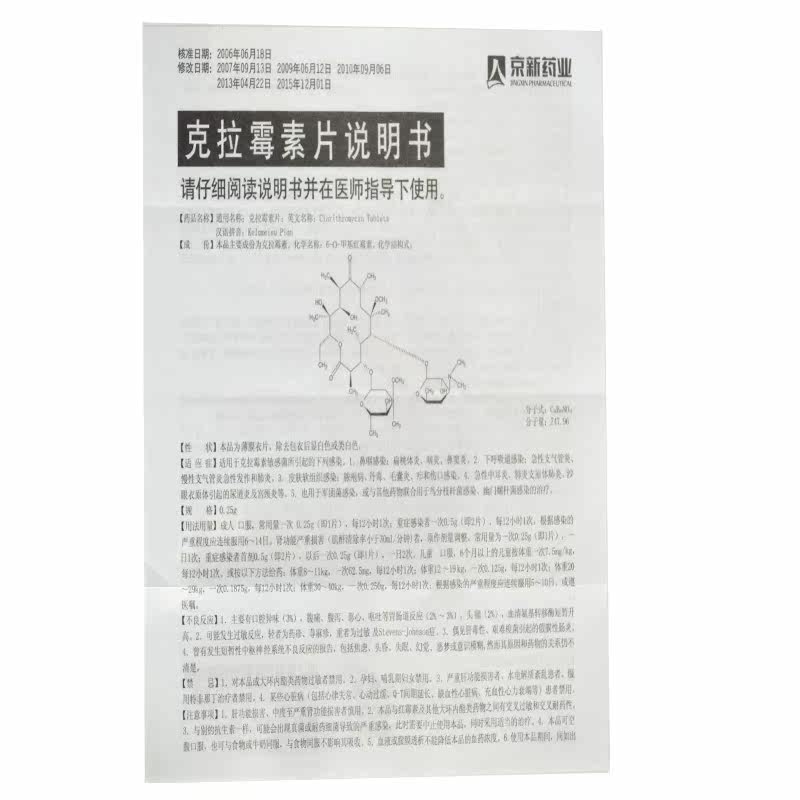 Kyoto's new clarithromycin sheet 0 25g * 24 sheet boxes for the nasopharyngeal infection caused by clarithromycin sensitive bacteria to infect the skin soft tissue infection with acute middle ear infections, etc.