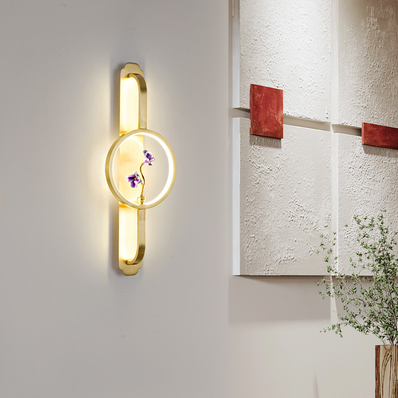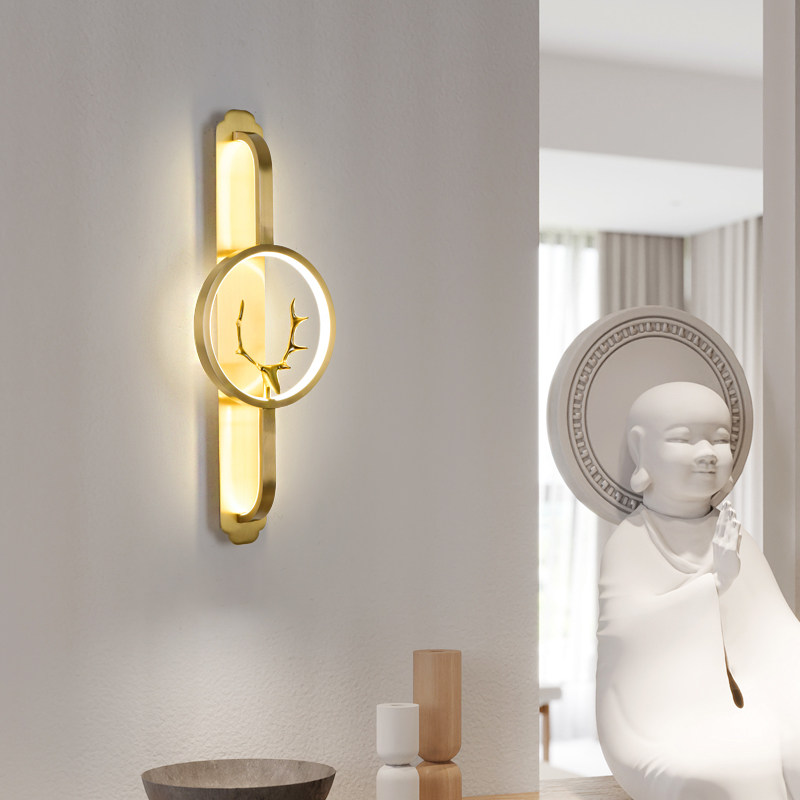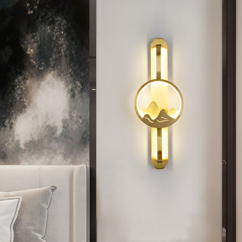 High-end new Chinese style full copper wall lamp TV background wall living room lamp Chinese style bedroom bedside modern staircase lamp