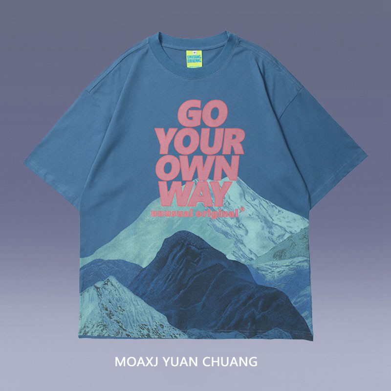 MOAXJ original tide brand 2021 summer street national tide retro printing short-sleeved T-shirt loose couple short-sleeved men and women