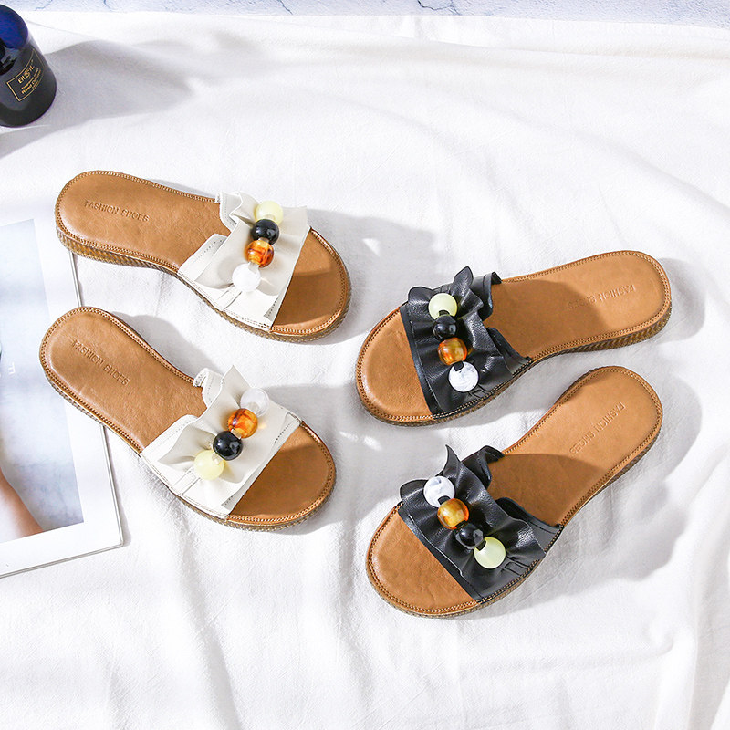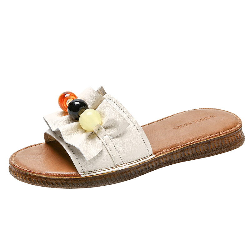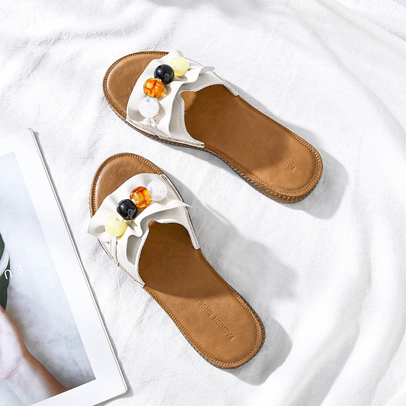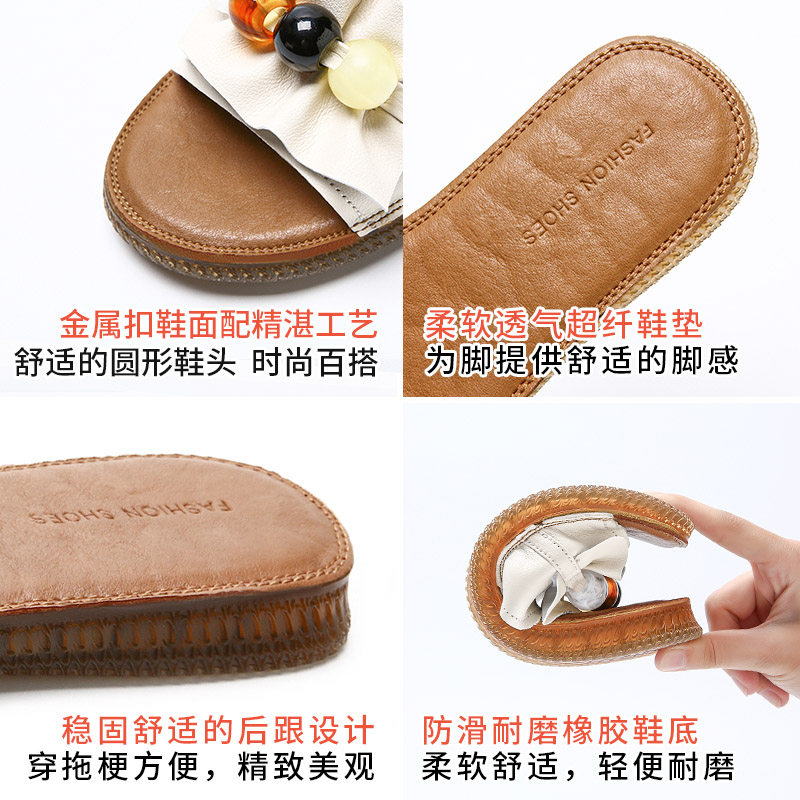 Buffalo sole slippers women wear soft sole beach shoes beach flat leather head skin slippers outside summer