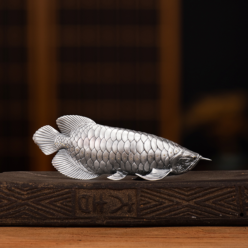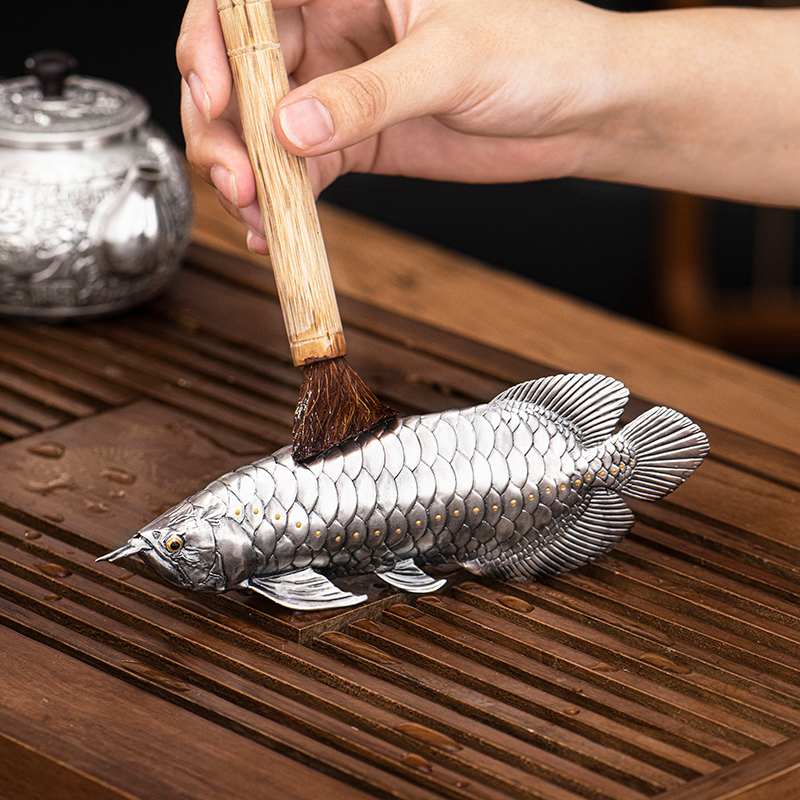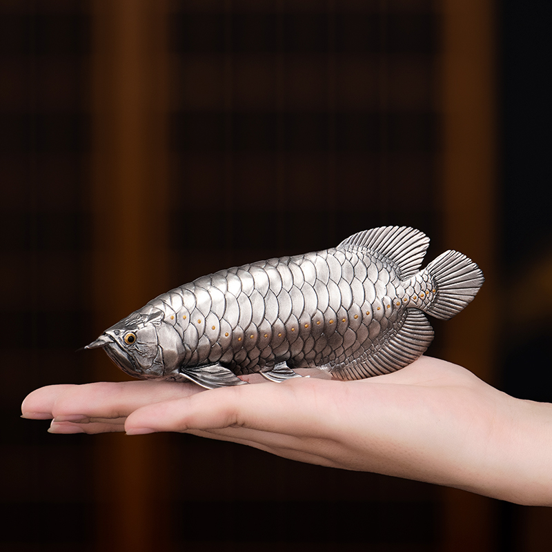 Silver Age Silver Arowana Tea Pet Sterling Silver 999 Ornaments Fine Gifts Collection Tea Play Tea Stand Ornaments