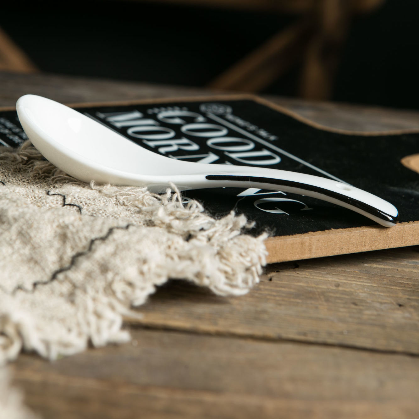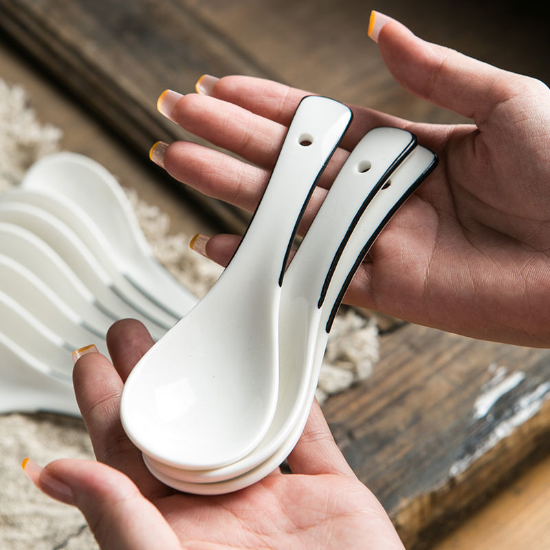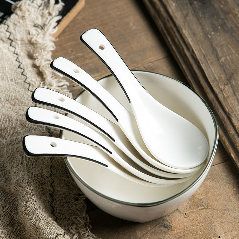Japanese-style 10-pack of ceramic small spoons, simple ins black line household spoons, creative spoons, spoons for drinking soup