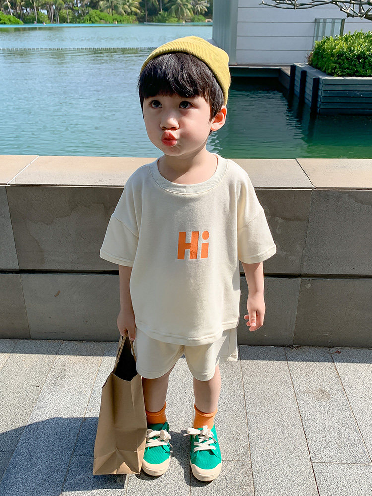 Boys and girls new sports suits 2021 summer Korean fashion shorts handsome short-sleeved T-shirt top two-piece set