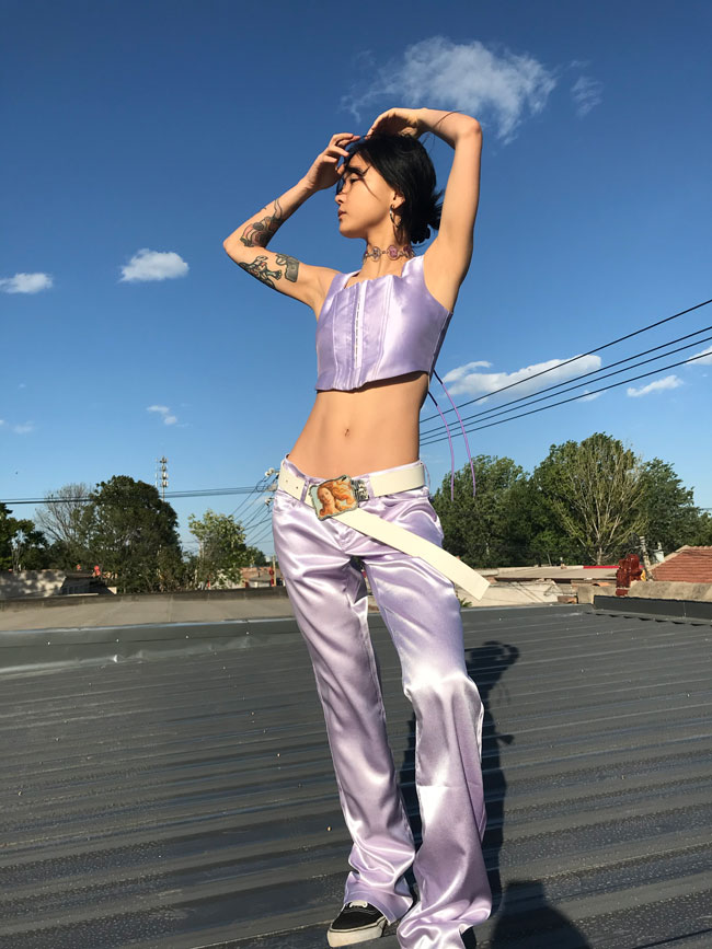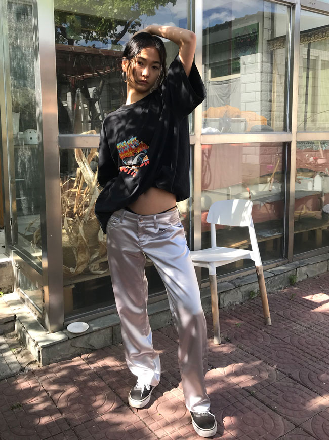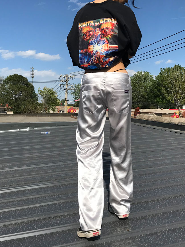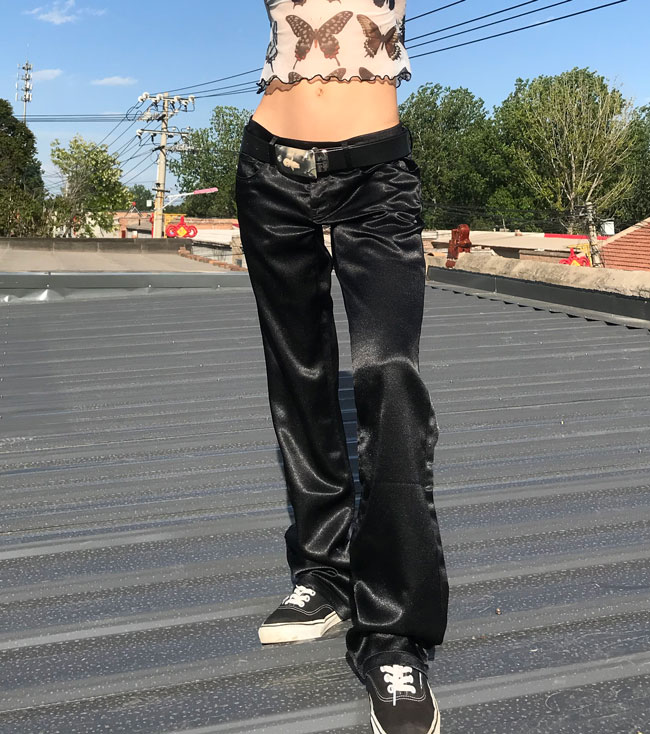 WILDLUST is hard to use Iconic metal gloss black and purple silver low-waist disco trousers