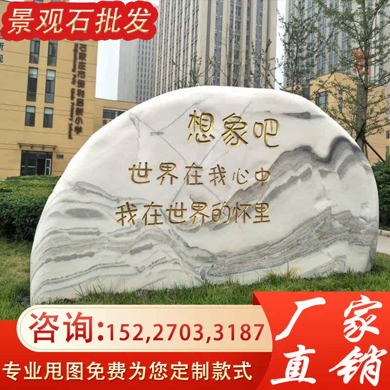 Large Landscape Stone Natural Wind Scenery Stone Natural Han White Jade Landscaped Village Mouth Lettering Stone Village Marker Stone Courtyard Pendulum