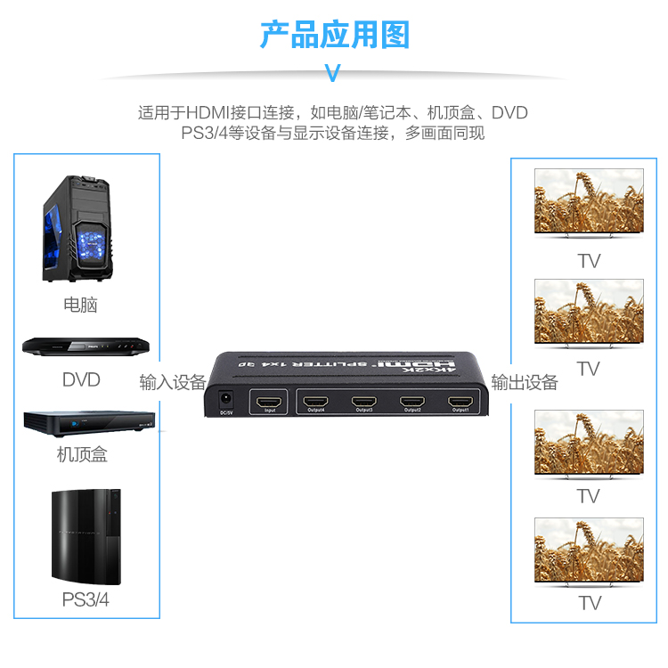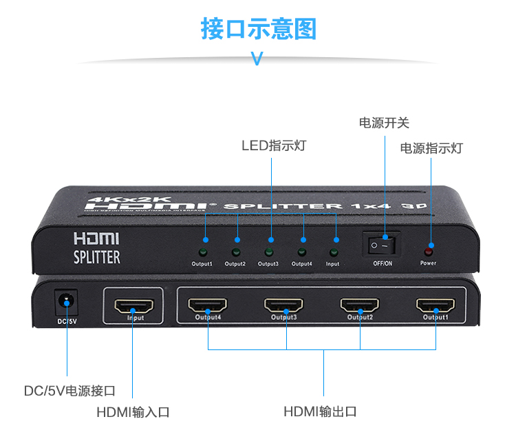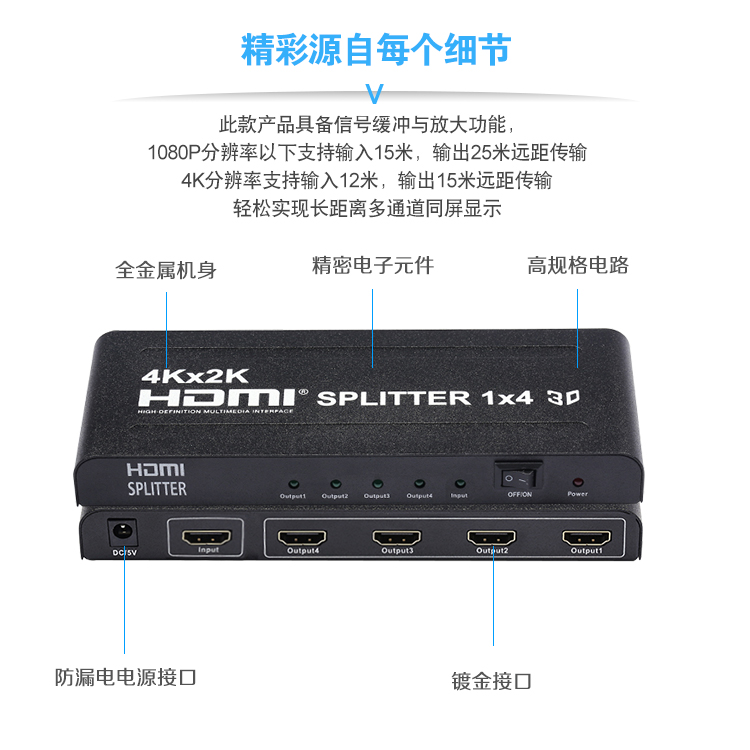 hdmi dispenser 1 in 4 out of film 4k computer screen high picture quality TV One in four out of screen with extension cord