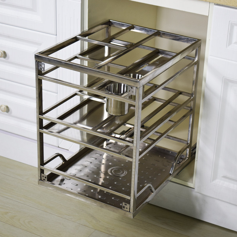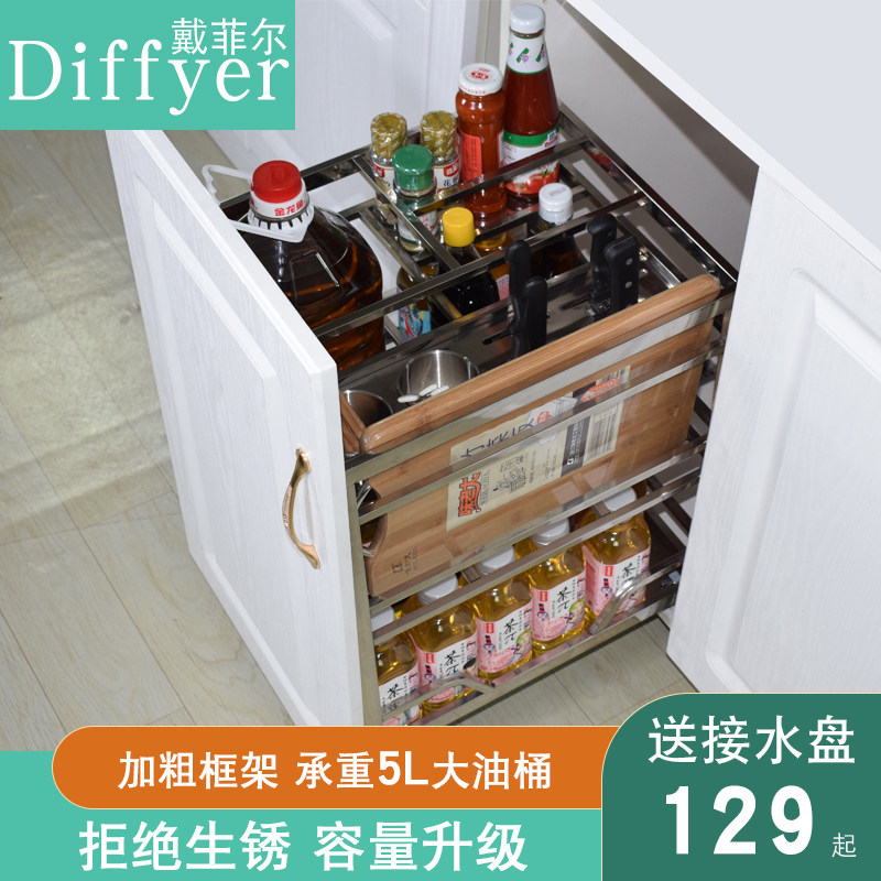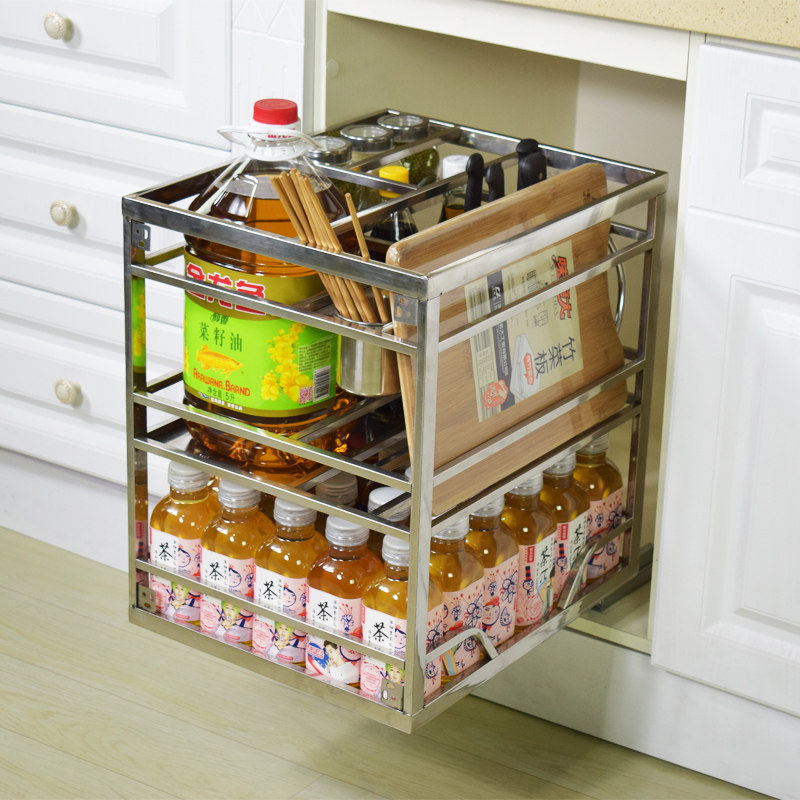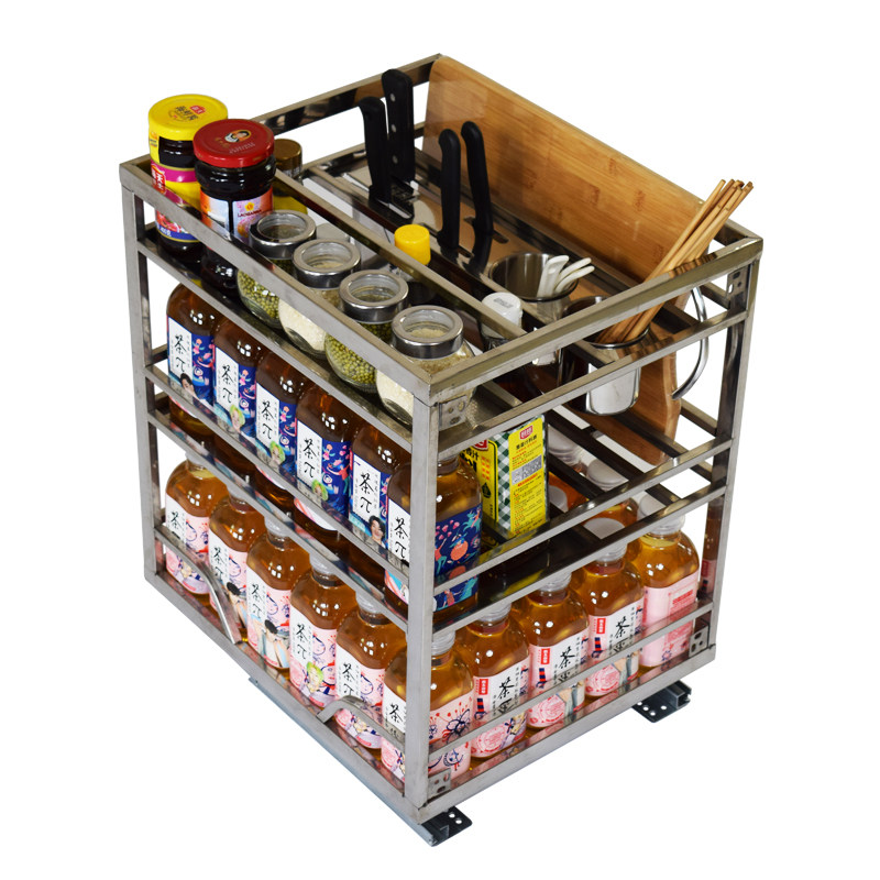 Kitchen cabinet drawer type stainless steel multilayer configuration conditioning frame flavor basket built-in vertical pull basket