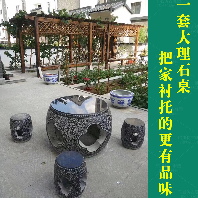 Stone Table Stone Bench Courtyard Garden Garden Home Outdoor Villa Green Stone Imitation Ancient Stone Table Balcony Tea Table Natural Stone Table And Chairs
