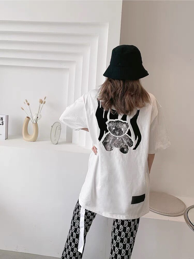 Country now we11done new night light flocking loose welldone short sleeve male and female petty bear T-shirt tide-Taobao