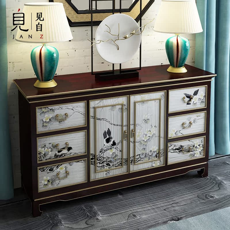 Modern light luxury hand-painted entrance cabinet shoe cabinet imitation Ming and Qing painted flowers and birds porch storage decoration cabinet cabinet furniture