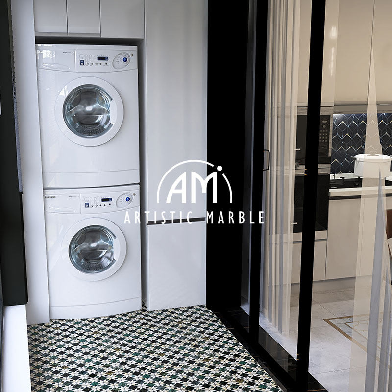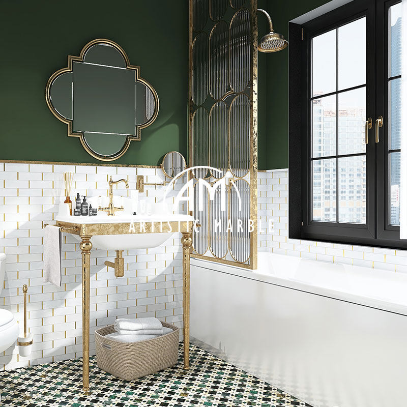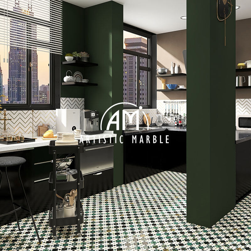Retro Great Flower Green Wall Ground Stone Mosaic Kitchen Bar Background Wall Bathroom Makeup Room Marble Tile