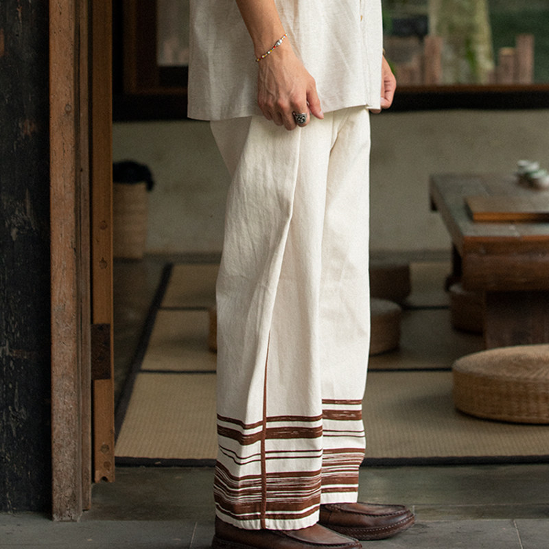 SOARIN Independent retro Inron straight cylinder loose 90% Pants Men Summer Thin with Pie Handsome Canvas Casual 9 Sub-pants