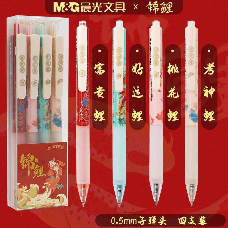 Chenguang Stationery Koi Good Luck Gel Pen Push-Type High-value Student Models for Girls Cute, Good-looking and Easy-to-use Black Pen 0 5mm Boxed Beautifully Packed Small Gifts for Girls