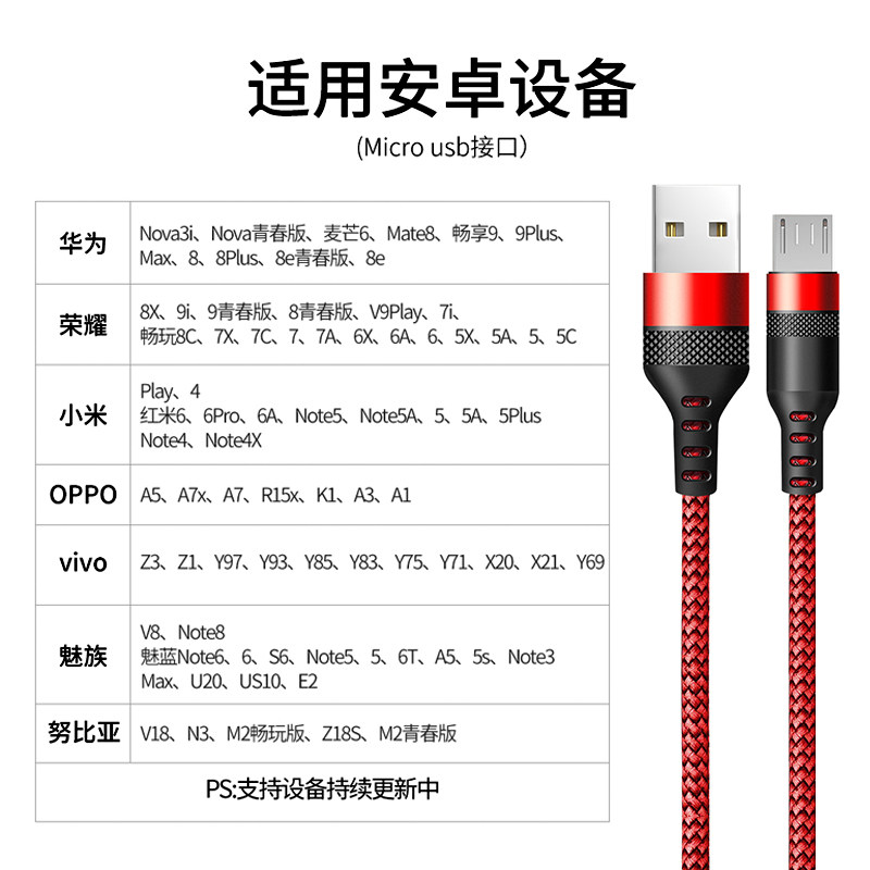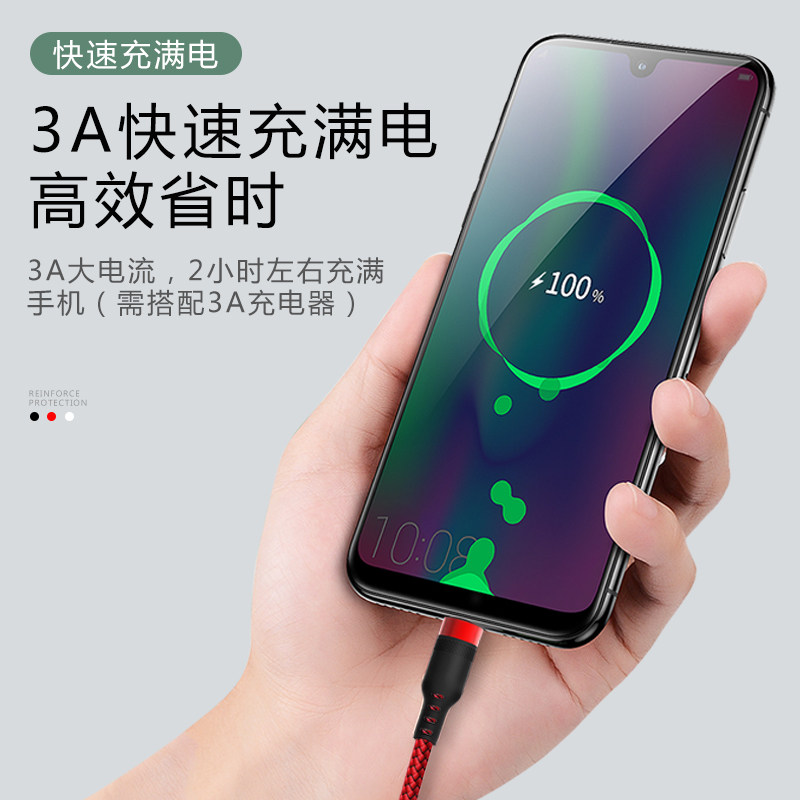 Android data line applies to Huawei's brisk OPPO Xiaomi VIVO red rice Samsung One plus Phantom Honor mobile phone Universal charging line 3A High speed Quick punch flash line lengthened