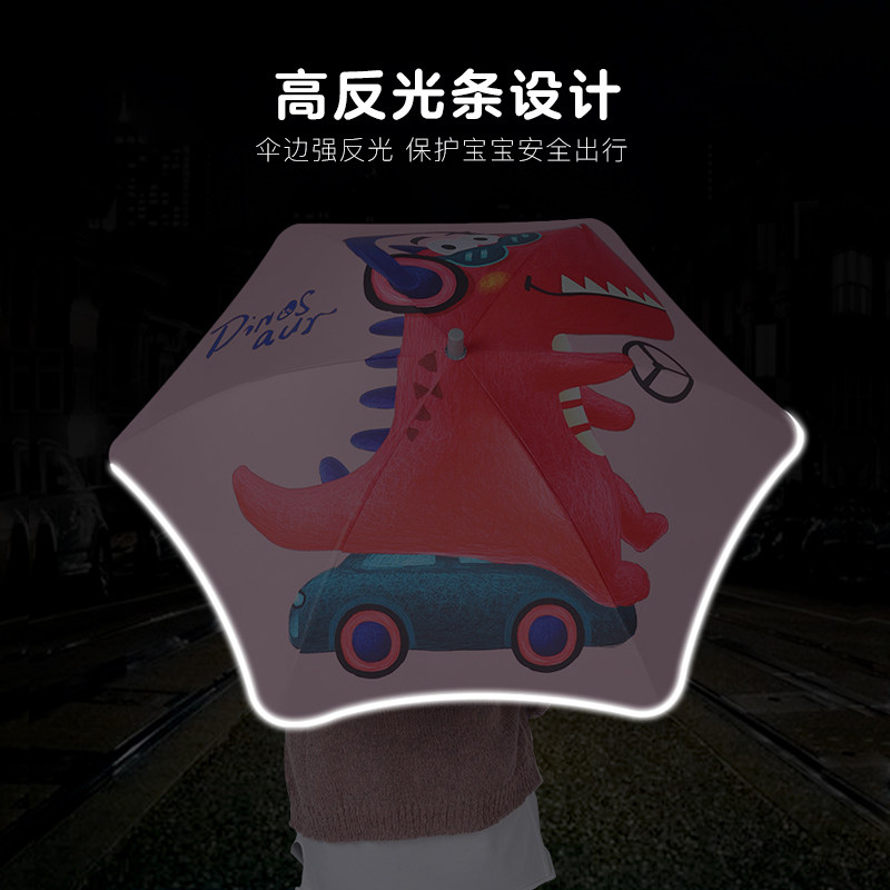 Beauty Rounded Corners Children Umbrella Dinosaur Series Cartoon Students Umbrella Black Glue Sunscreen Anti UV Cute Beach Umbrellas