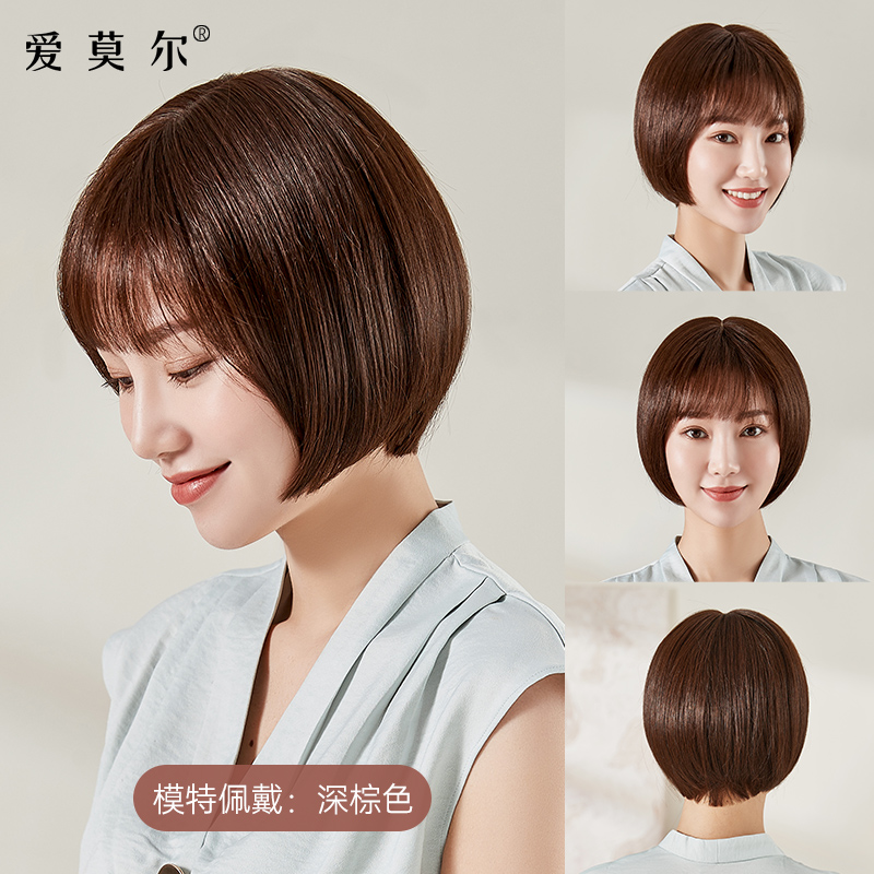 Wig woman short hair full head cover real hair full real natural mother round face wave head wig set real woman hair