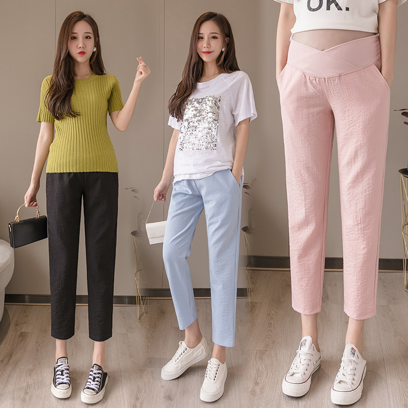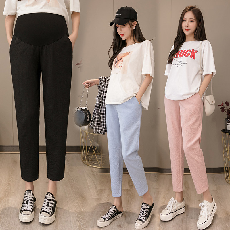 Pregnant Woman Pants Woman Summer Thin outside wearing ice silk fashion Slim Size Large Size Small Sub 90% Nets Pants Summer Fashion