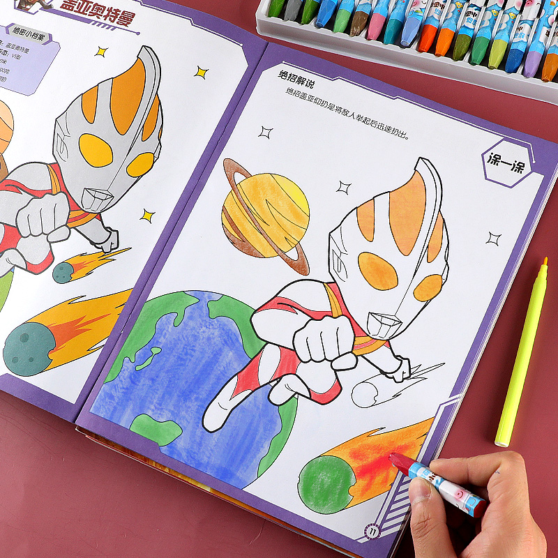 Ultraman cool coloring hero adventure a total of 24 pages (including 4 watercolor pens) Ultraman cool coloring Ultraman League a total of 24 pages (including 4 watercolor pens) Ultraman cool painting