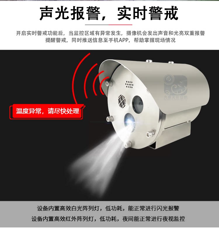 304 stainless steel double spectral infrared explosion - proof imaging camera temperature detection of sound and light alarm