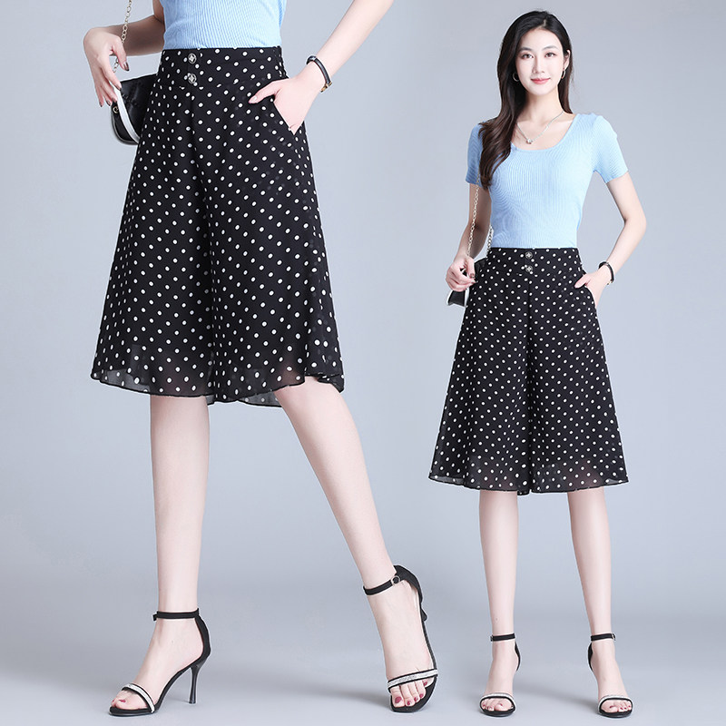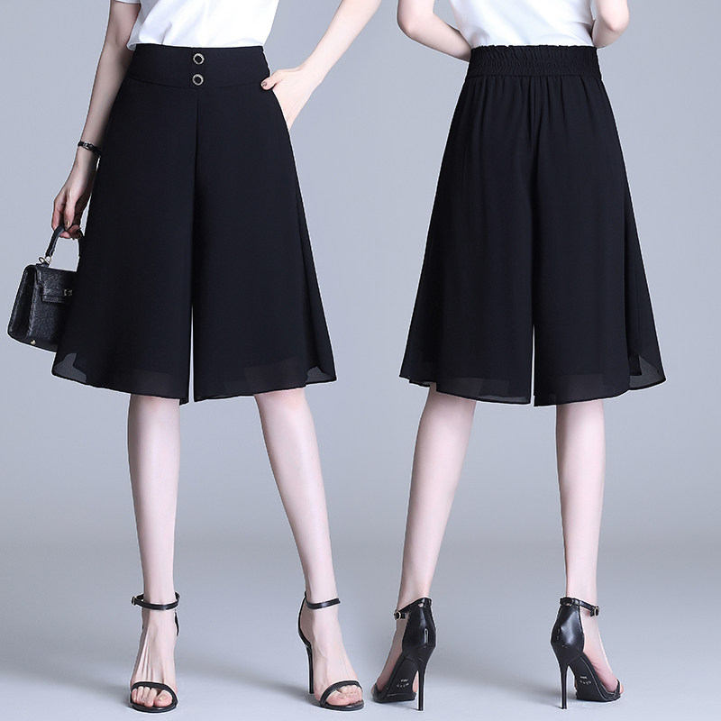 Chiffon wide-leg pants women's summer thin cropped pants 2022 new high-waisted slim loose drape casual five-point culottes