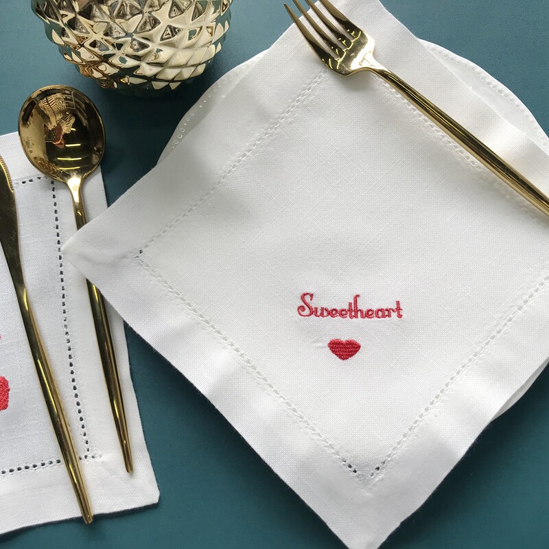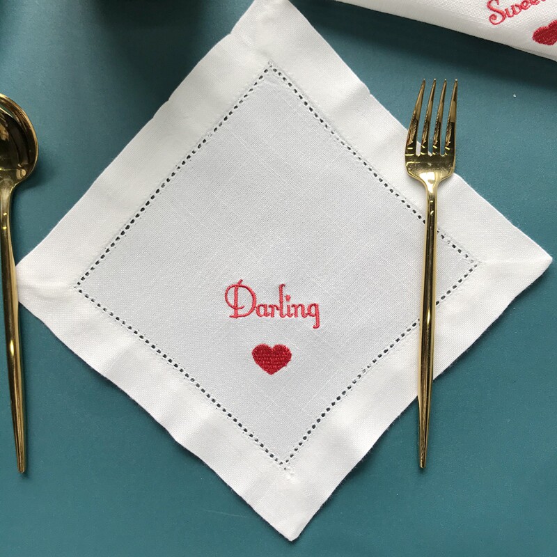 (French Placemat) Darling Red Heart Embroidered Placemat Coaster Home Decor Mat