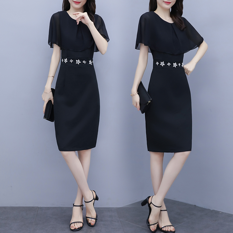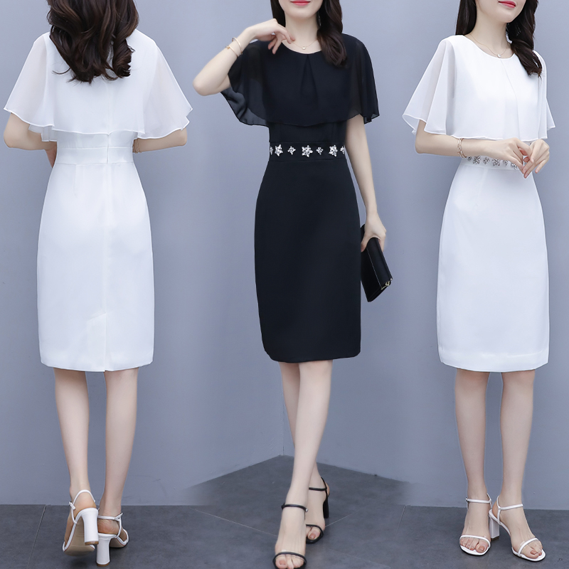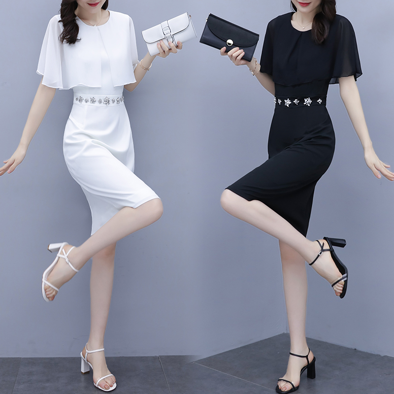 2022 summer ladies dress skirt waist slim chiffon dress bag hip short sleeve slim white black