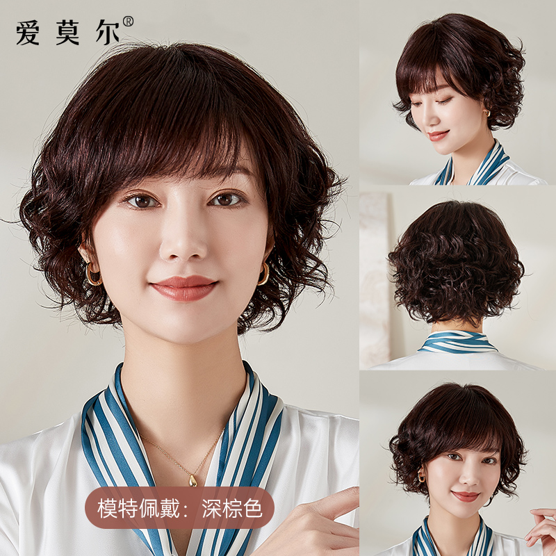Wig woman short hair wig set live-action hair real hair headgear All True Nature Mom wig for old age long hair short