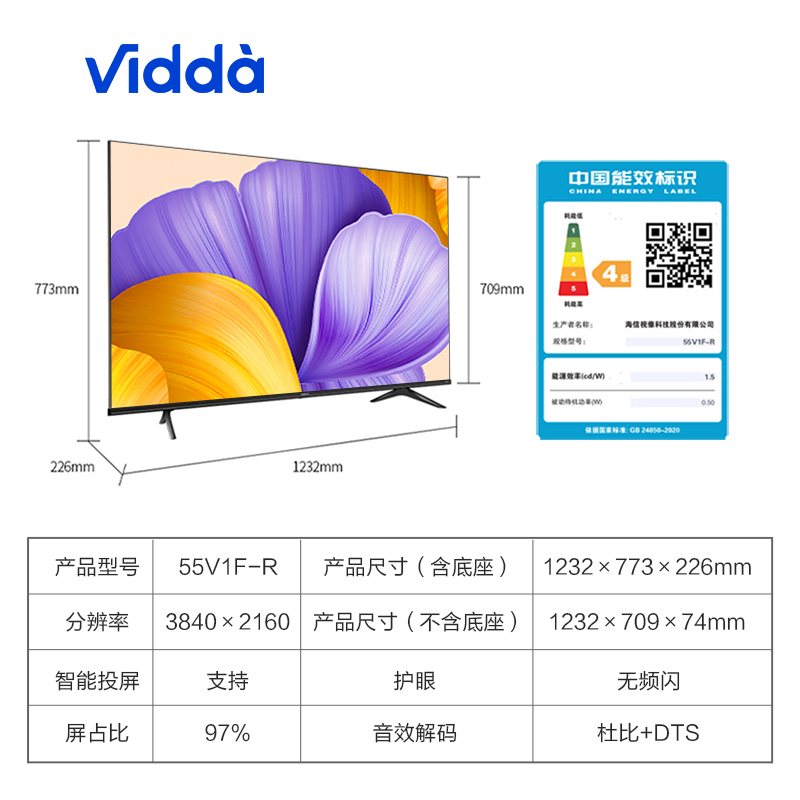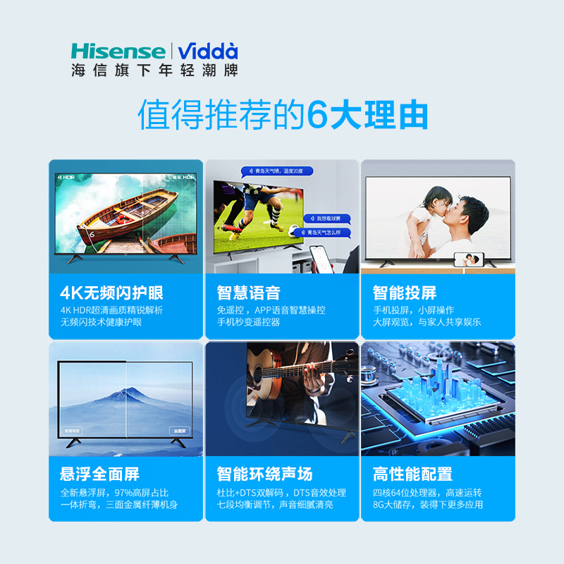 (979) Hisense Vidda 55V1F-R 55 inch 4K HD full screen smart flat panel TV 50