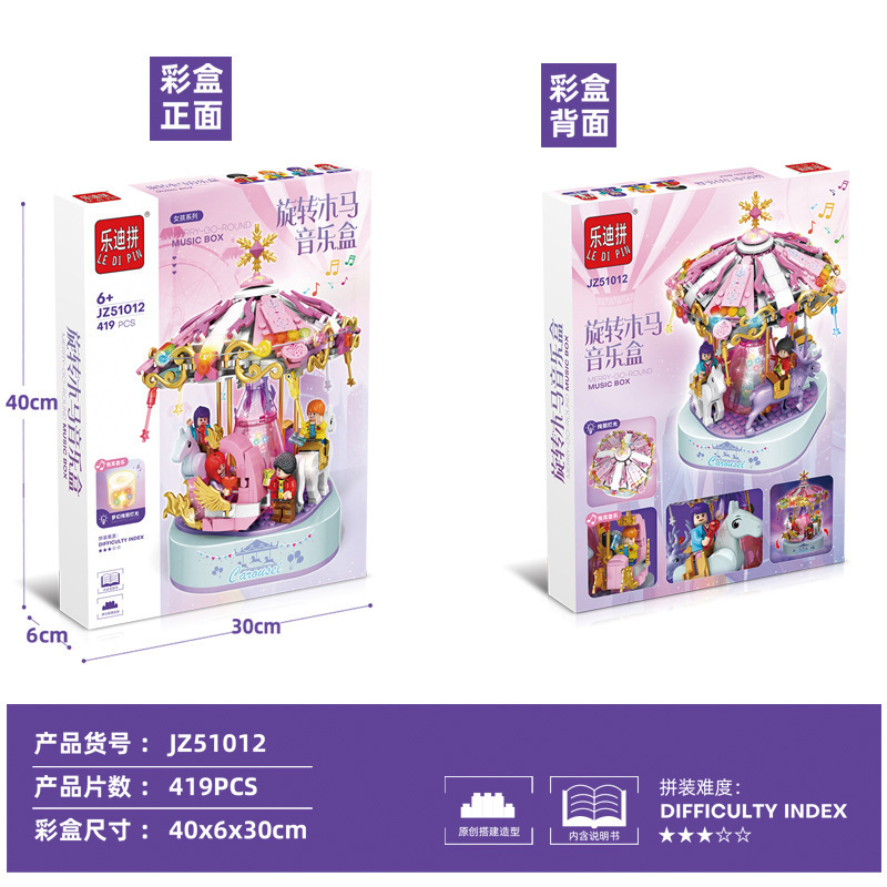 Xinjiang Building Blocks Rotary Trojan Horse Light Music Box Diy Assembly Toy Girl Child Birthday Present