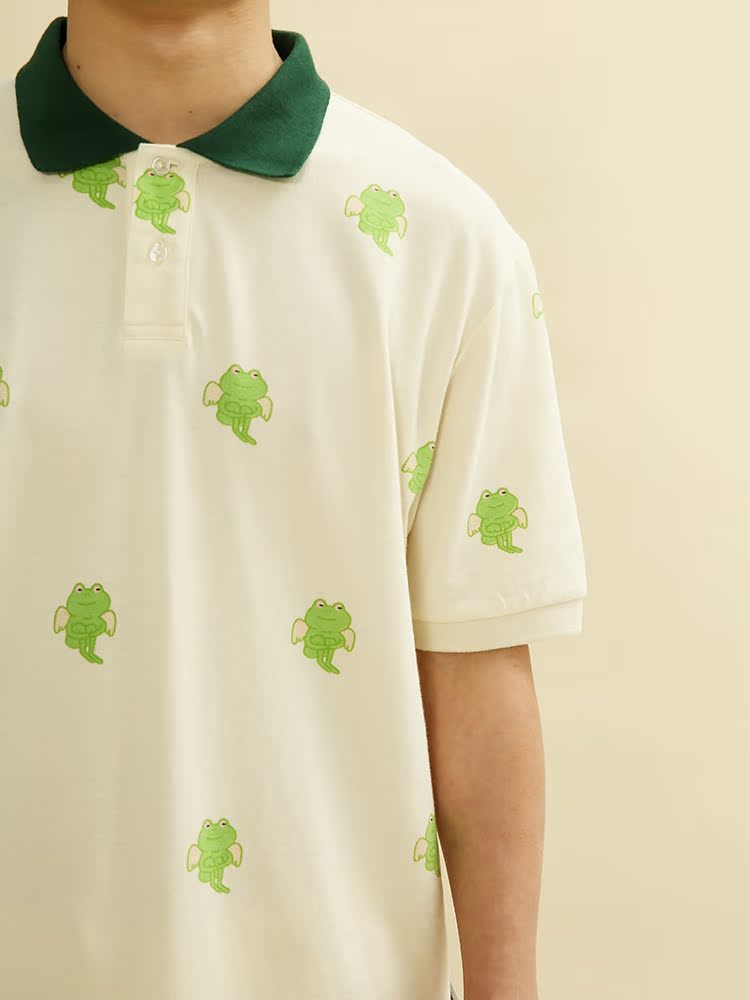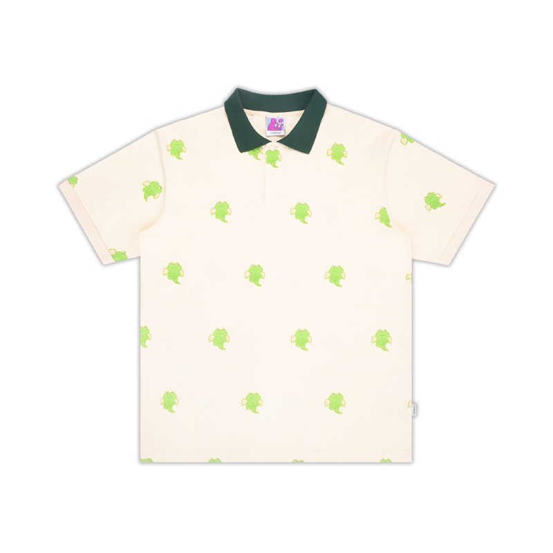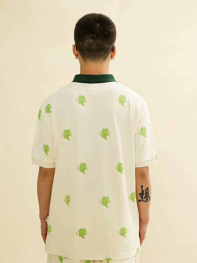 Candymade 21ss NATURE series summer couple full print frog beige thread short-sleeved polo shirt