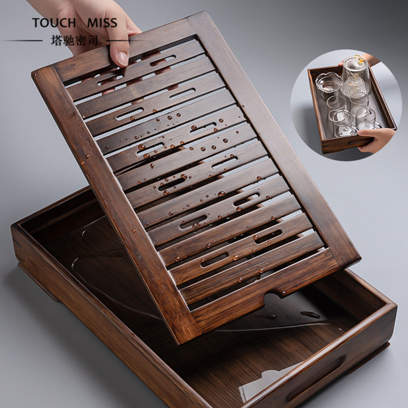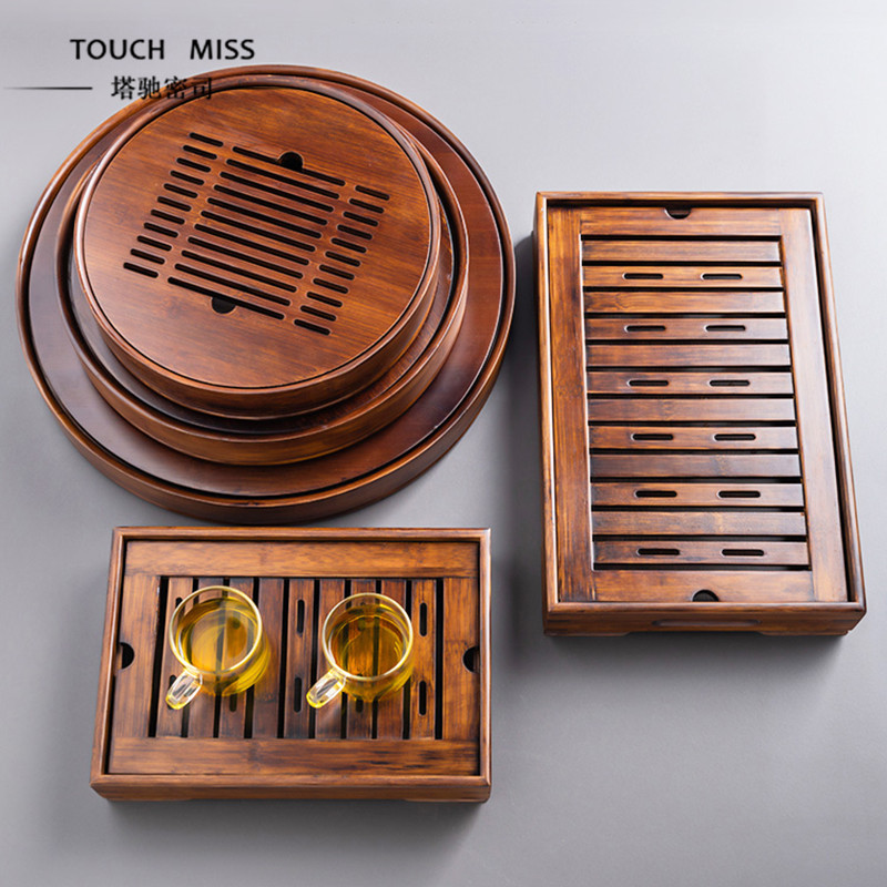 Touch Miss Japanese-style rough pottery tea sea water storage bamboo teahouse elegant and leisurely dry tea set tea tray
