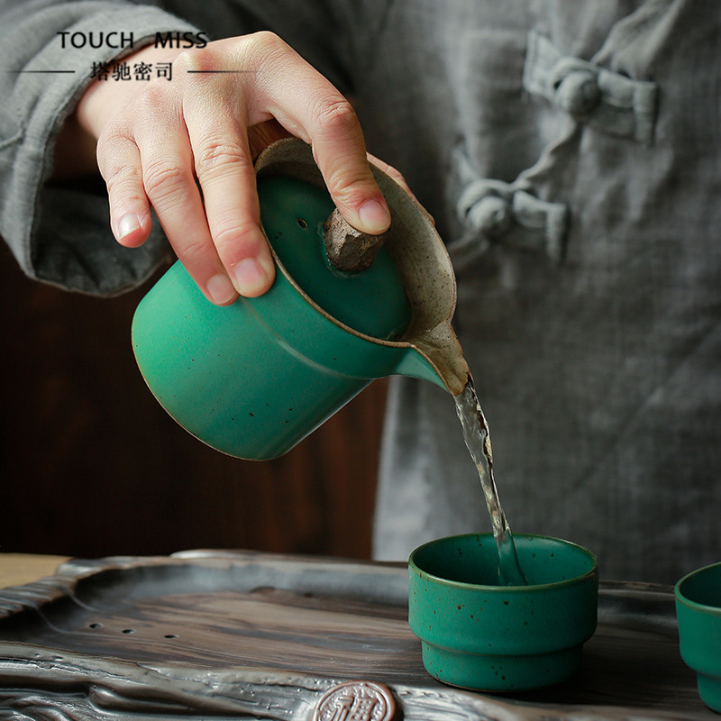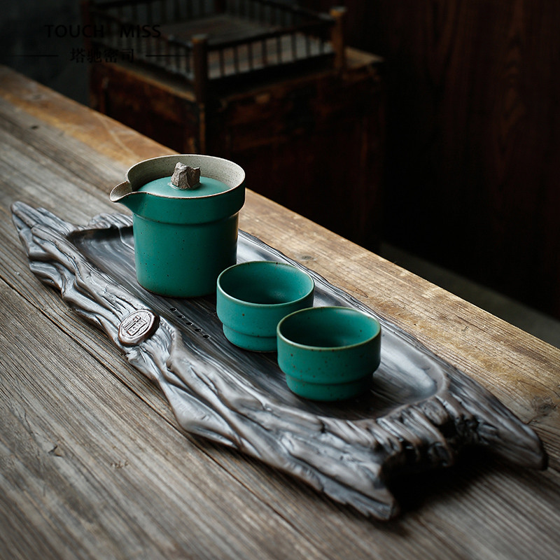 Touch Miss. Chinese style retro meditation tea set for small crowd design Creative Tea Sea Storage type Imitation Dead Wood Tea Tray