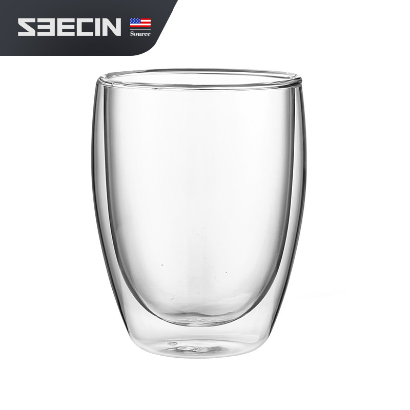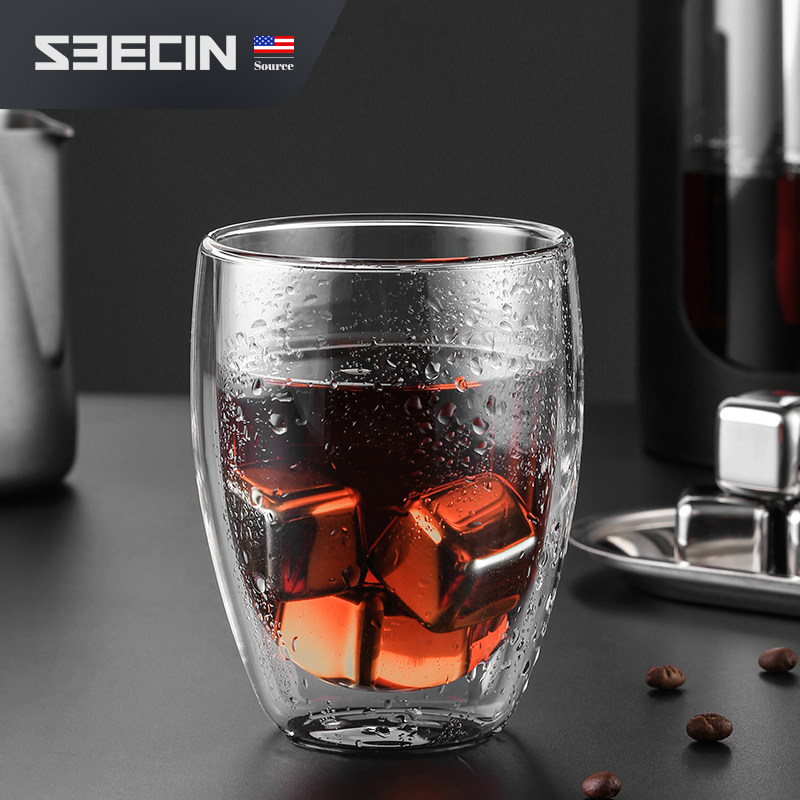 American seecin thickened double insulated coffee cup Transparent glass Hot and cold non-hot creative juice cup