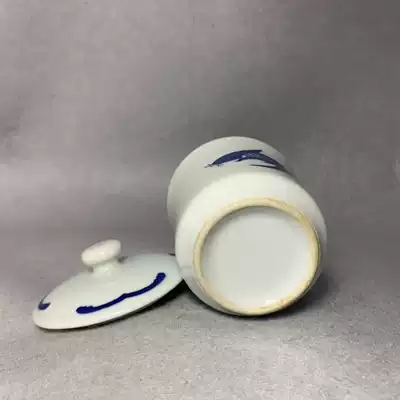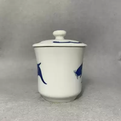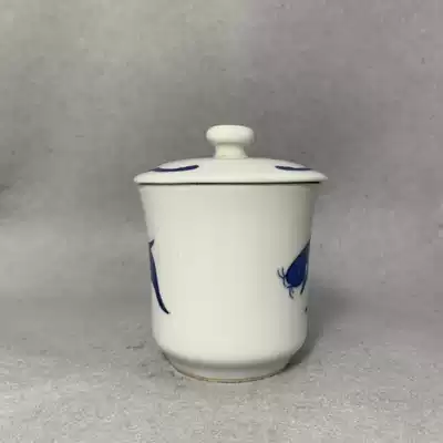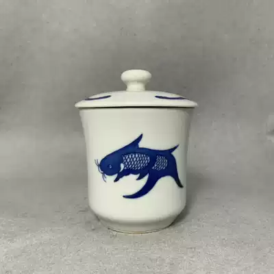 Jingdezhen 1980s state-owned Blue and white stationery factory Huaiqing flower carp Cup 150 ml hair color pure old
