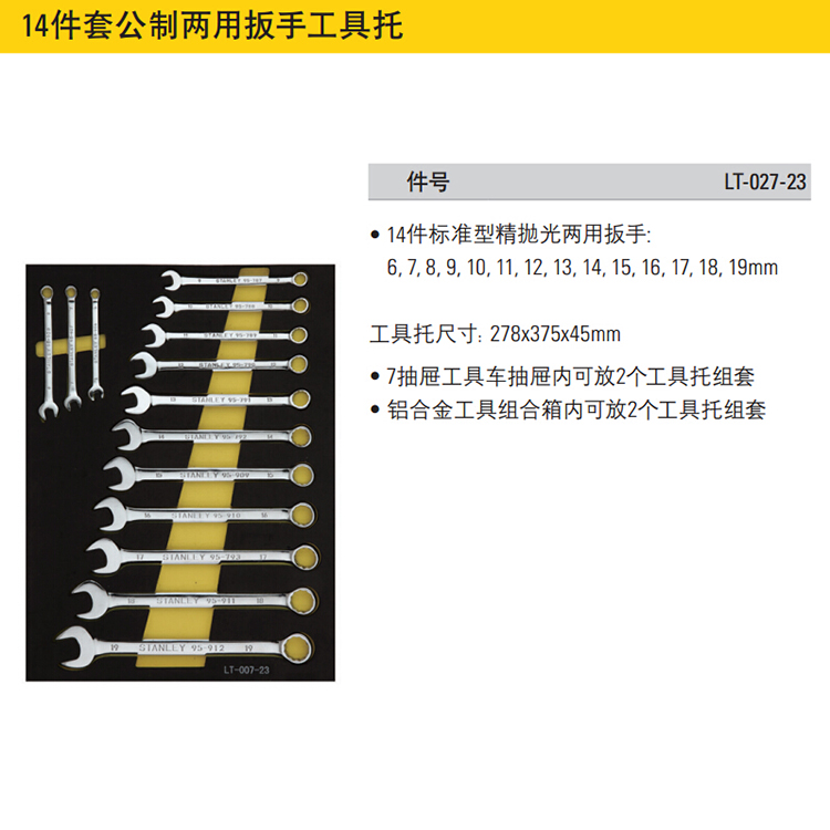 Stanley 14-piece metric dual-use wrench tool holder set 6-19mm set of plum open wrench LT-027-23