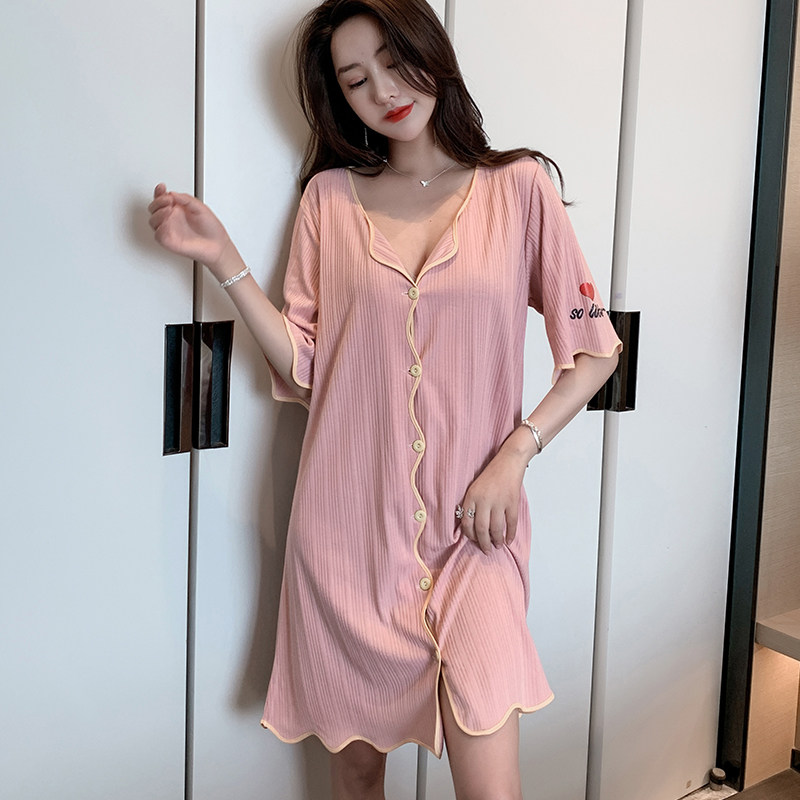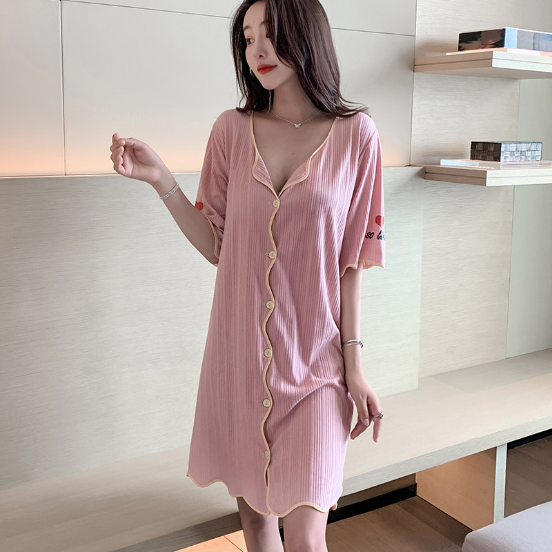Sexy Sleeping Dress Woman Summer Short Sleeve Han Edition Cardiovert cotton pyjamas 2022 New extras Home Clothing Pink