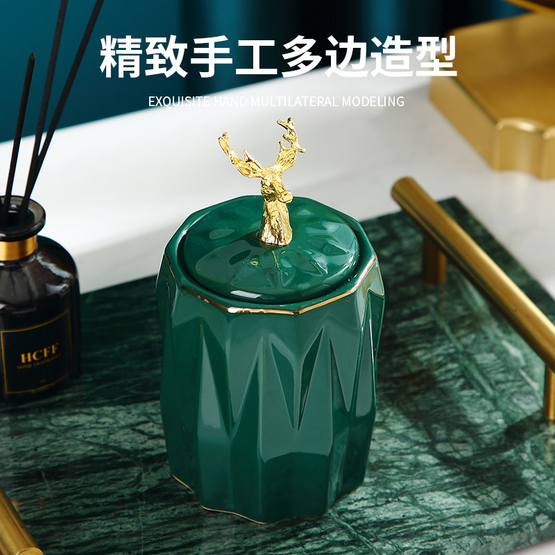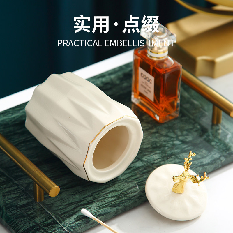(Crack white) Can be used as a cotton swab canister toothpick holder (light luxury green) Can be used as a cotton swab canister toothpick holder (beige)